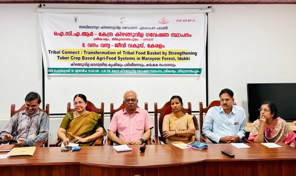 Director along with Principal Scientists Dr. G. Suja, Dr. J. Sreekumar, and Dr. A.N. Jyothi, and Technical Assistant Mr. D.T. Rejin, attended the farmers’ training programme organised under the All India Coordinated Research Project on Tuber Crops (AICRP on Tuber Crops) at Marayur, Idukki.