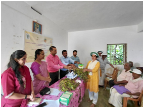 As part of the programme, planting materials of improved biofortified sweet potato varieties—Bhu Sona and Bhu Krishna—along with the promising biofortified genotype SP-95/4, were distributed to farmers. Training materials were also provided to support the establishment of demonstration plots and seed villages under the TSP initiative.