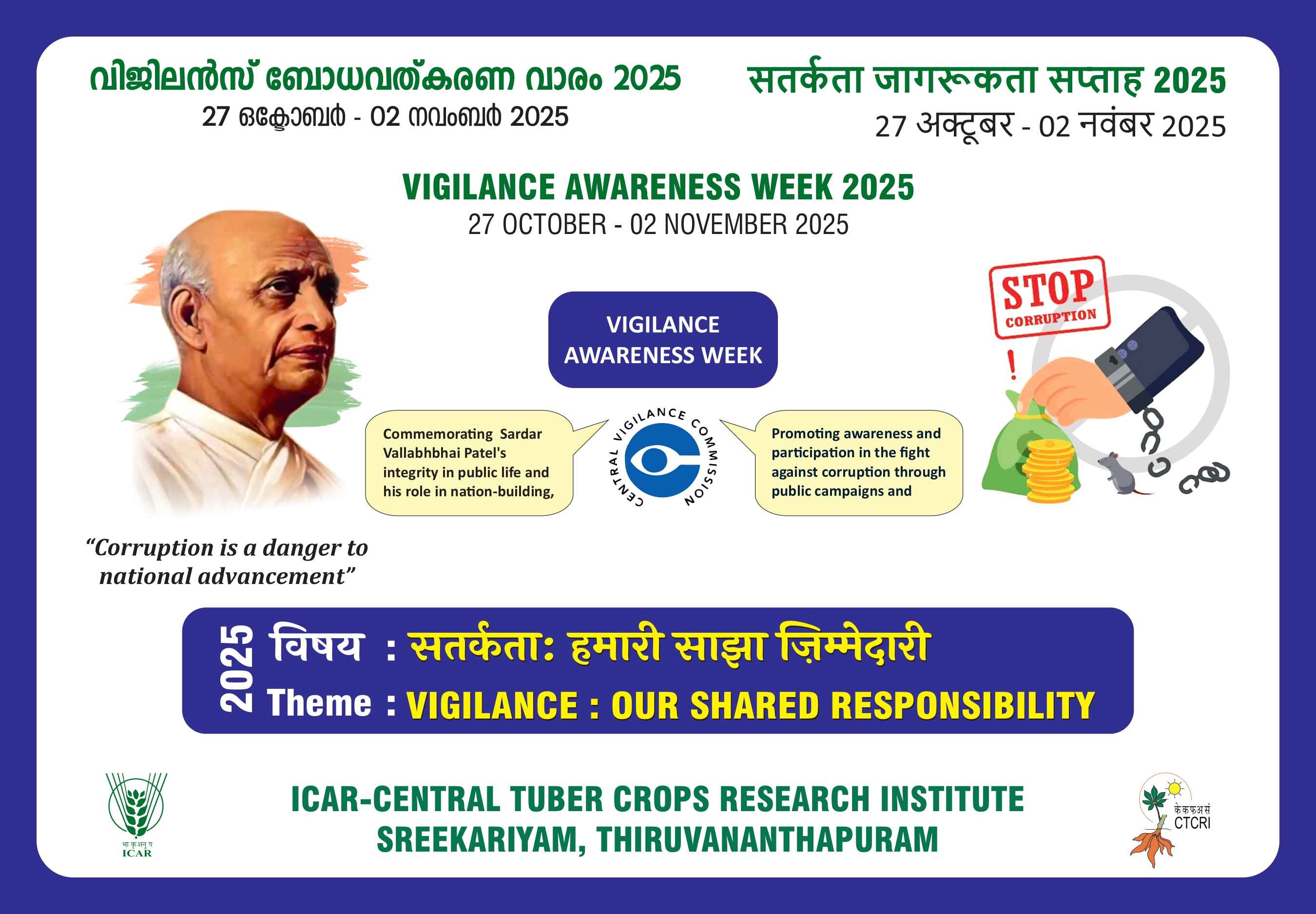With the theme — “Vigilance: Our Shared Responsibility”, ICAR- CTCRI joins the nation in observing Vigilance Awareness Week 2025.